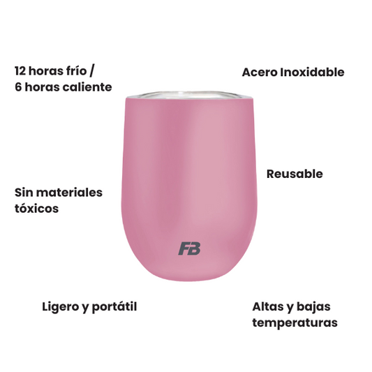 Vaso Térmico 12 oz / 354 ml - Rosa Mate - Acero Inoxidable