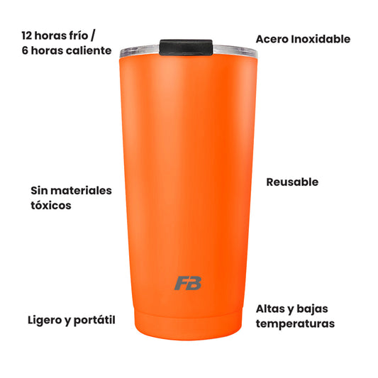 Vaso Térmico 20 oz / 591 ml - Naranja Neón - Acero Inoxidable
