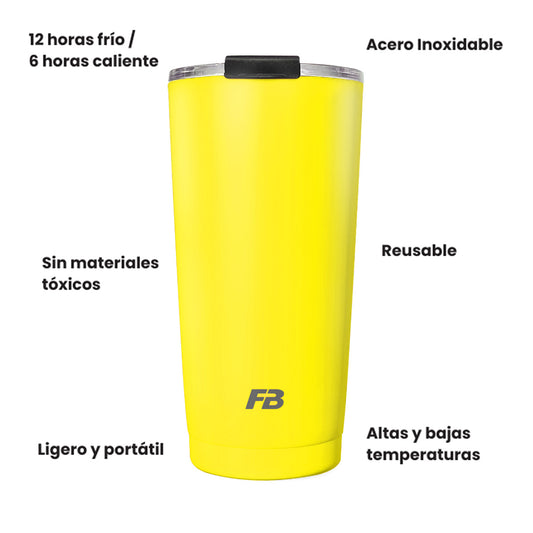 Vaso Térmico 20 oz / 591 ml - Amarillo Neón - Acero Inoxidable