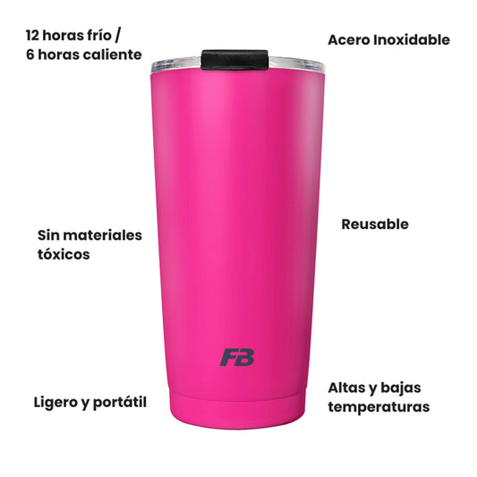 Vaso Térmico 20 oz / 591 ml - Rosa Neón - Acero Inoxidable
