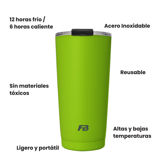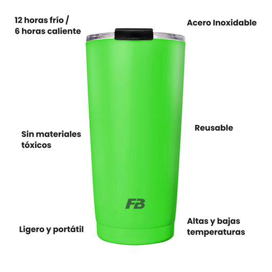 Vaso Térmico 20 oz / 591 ml - Verde Neón - Acero Inoxidable