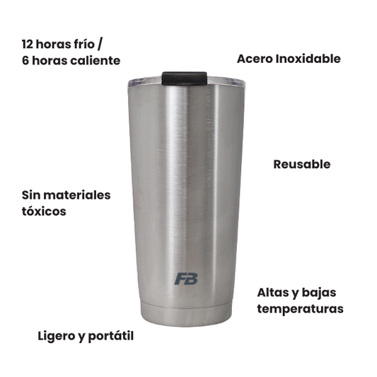 Vaso Térmico 20 oz / 591 ml - Metálico - Acero Inoxidable