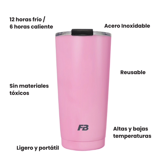 Vaso Térmico 20 oz / 591 ml - Rosa - Acero Inoxidable