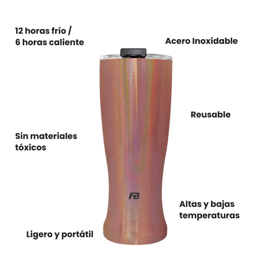 Vaso Térmico 23 oz / 680 ml - Bronce Glitter - Acero Inoxidable