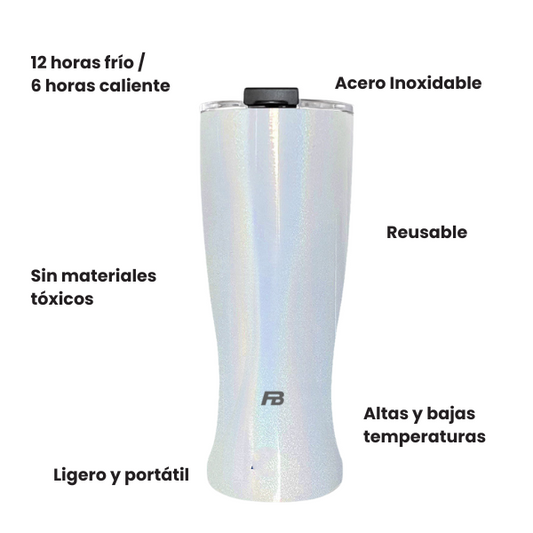 Vaso Térmico 23 oz / 680 ml - Blanco Glitter - Acero Inoxidable