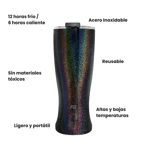Vaso Térmico 23 oz / 680 ml - Negro Glitter - Acero Inoxidable