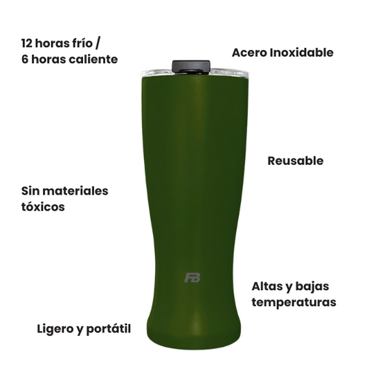 Vaso Térmico 23 oz / 680 ml - Verde Mate - Acero Inoxidable