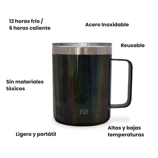 Taza Térmica 14 oz / 414 ml - Negro Glitter - Acero Inoxidable
