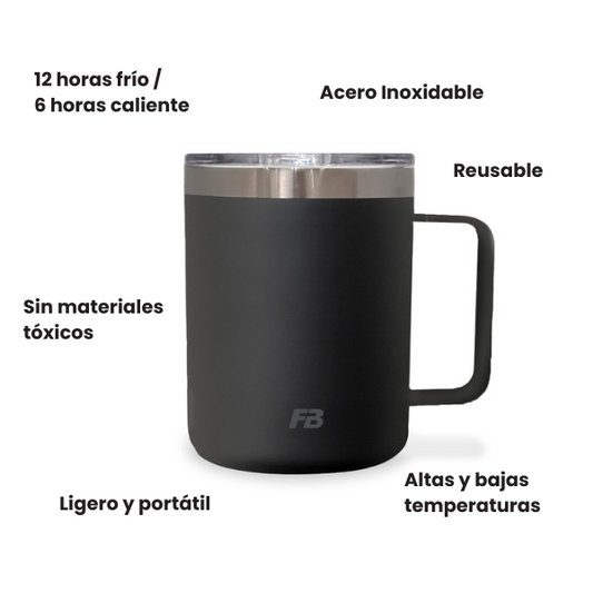 Taza Térmica 14 oz / 414 ml - Negro Mate - Acero Inoxidable