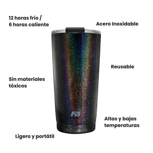 Vaso Térmico 20 oz / 591 ml - Negro Glitter - Acero Inoxidable