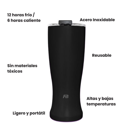 Vaso Térmico 23 oz / 680 ml - Negro - Acero Inoxidable