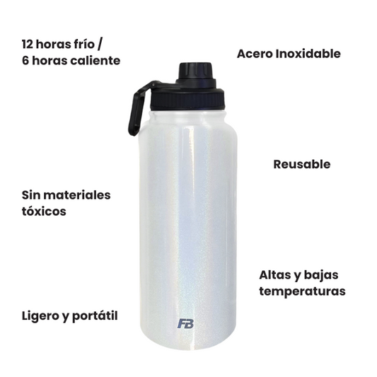Termo 32 oz / 950 ml +12 hrs Calor +6 hrs Color Blanco Glitter