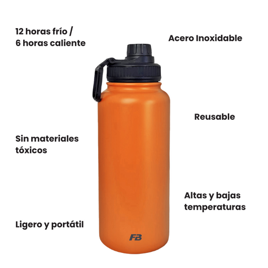 Termo 32 oz / 950 ml +12 hrs Calor +6 hrs Color Naranja