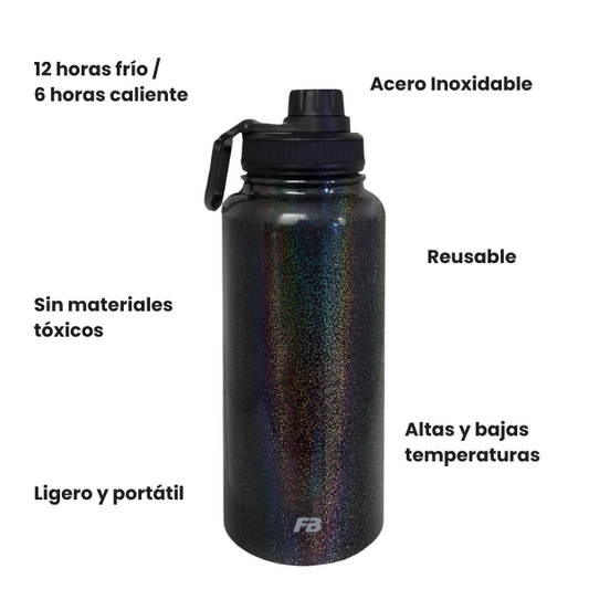 Termo 32 oz / 950 ml +12 hrs Calor +6 hrs Color Negro Glitter
