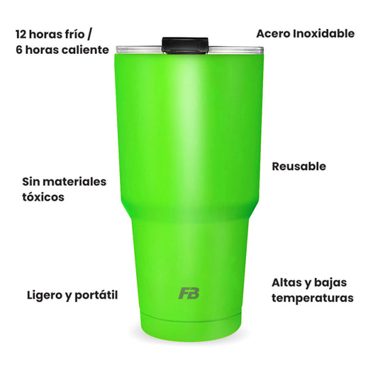 Vaso Térmico 27 oz / 800 ml - Verde Neon- Acero Inoxidable