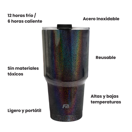 Vaso Térmico 27 oz / 800 ml - Negro Glitter - Acero Inoxidable