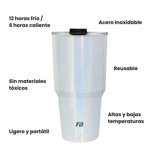 Vaso Térmico 27 oz / 800 ml - Blanco Glitter - Acero Inoxidable