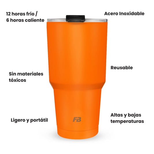 Vaso Térmico 27 oz / 800 ml - Naranja Neon- Acero Inoxidable