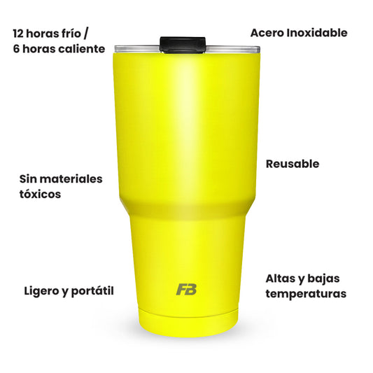 Vaso Térmico 27 oz / 800 ml - Amarillo Neon- Acero Inoxidable