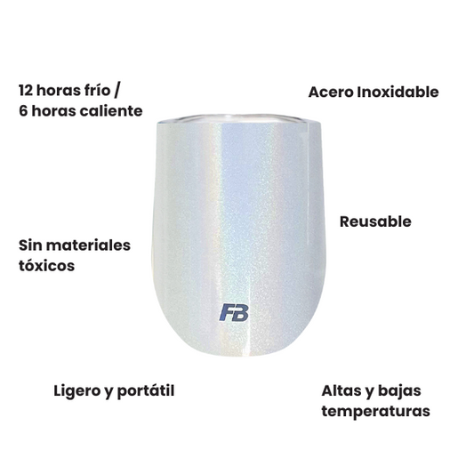 Vaso Térmico 12 oz / 354 ml - Blanco Glitter - Acero Inoxidable