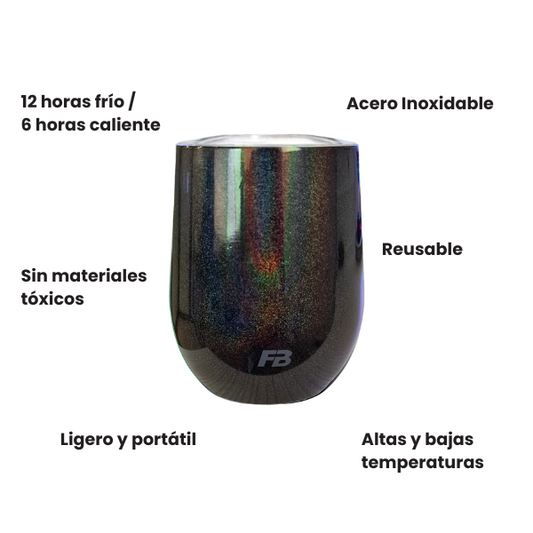 Vaso Térmico 12 oz / 354 ml - Negro Glitter - Acero Inoxidable